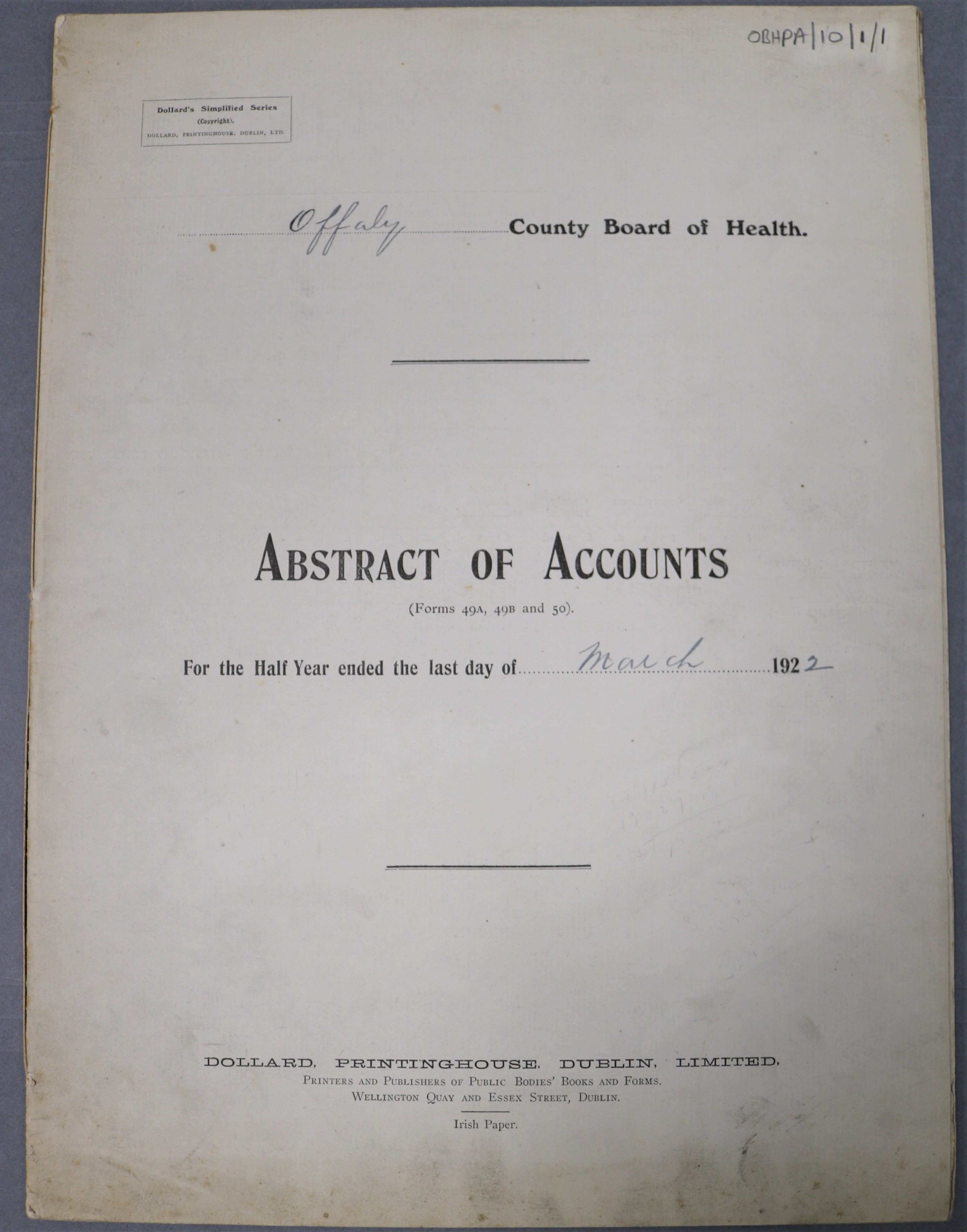 A large and varied series of account books and financial statements, broadly reflecting the financial management of the Board of Health for the period 1922-1965. Includes abstracts of accounts, auditors statements, inventories of stock, travel expenses, and other records of daily cash transactions.