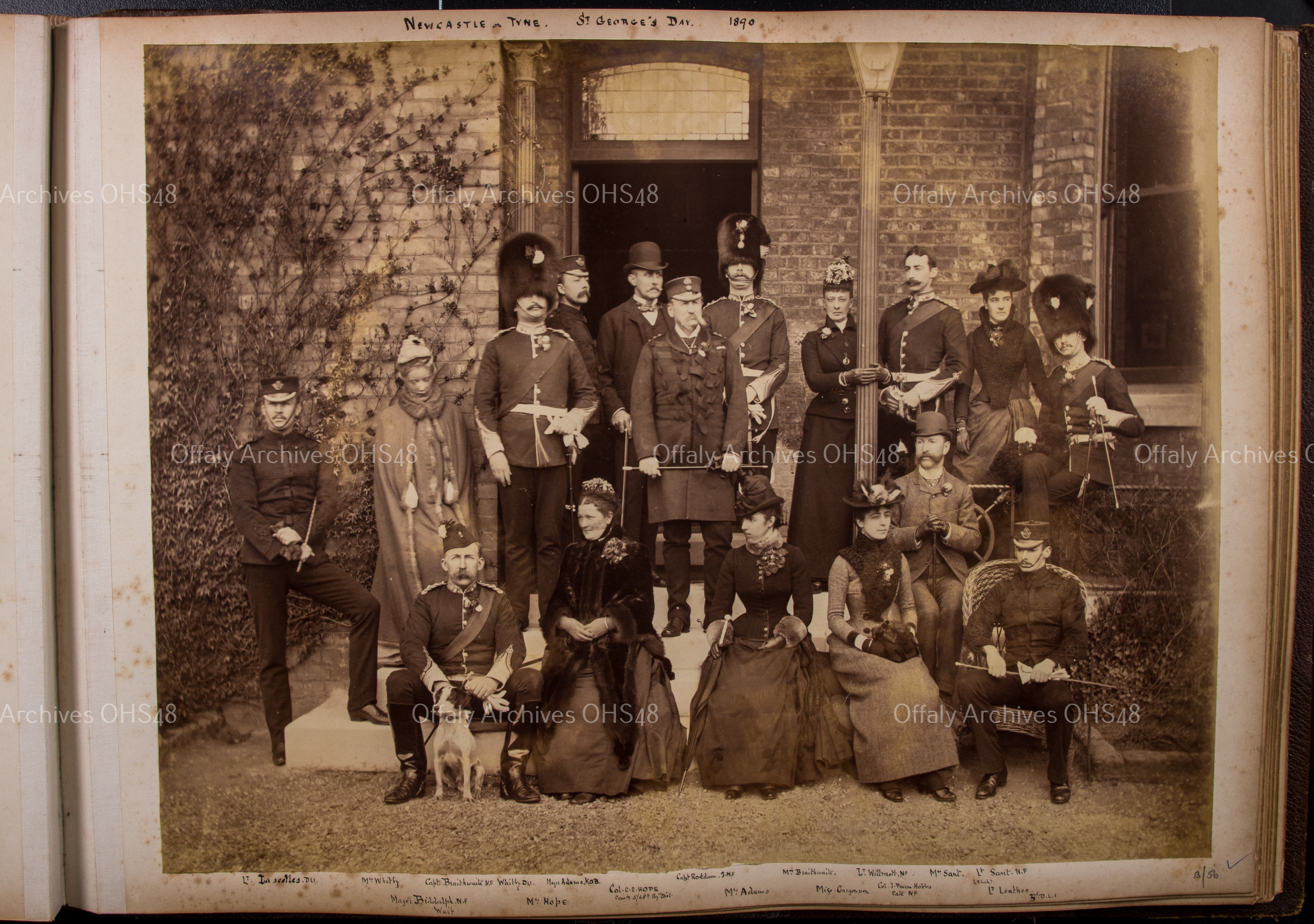 Lt. Seelles DLI, Mrs Whitby, Capt Braithwaite, N.F., Whitby DLI, Major Adams KOB, Capt Roddam 3rd N.F., Mrs. Braithwaite, Lt Willmot N.F, Mrs Sant, Lt Sant N.F., Major Biddulph N.F, Waif, Mrs Hope, Col C.E. Hope (comp 5/68th Reg Dist) Mrs Adams, Miss Gurgenver, Col. J. Pearse Hobbs late N.F, Lt Leathes 3rd DLI'.