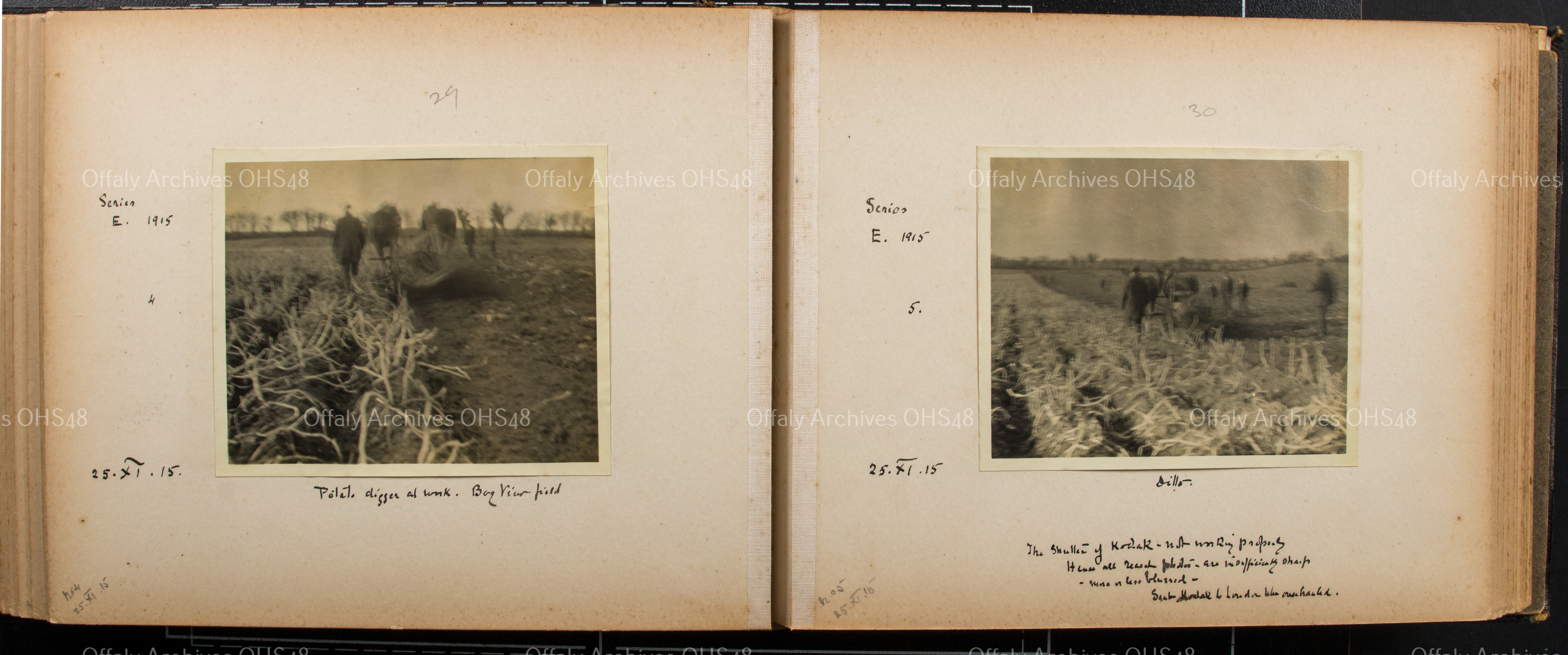 1. 'Potato digger at work. Bog View field'.