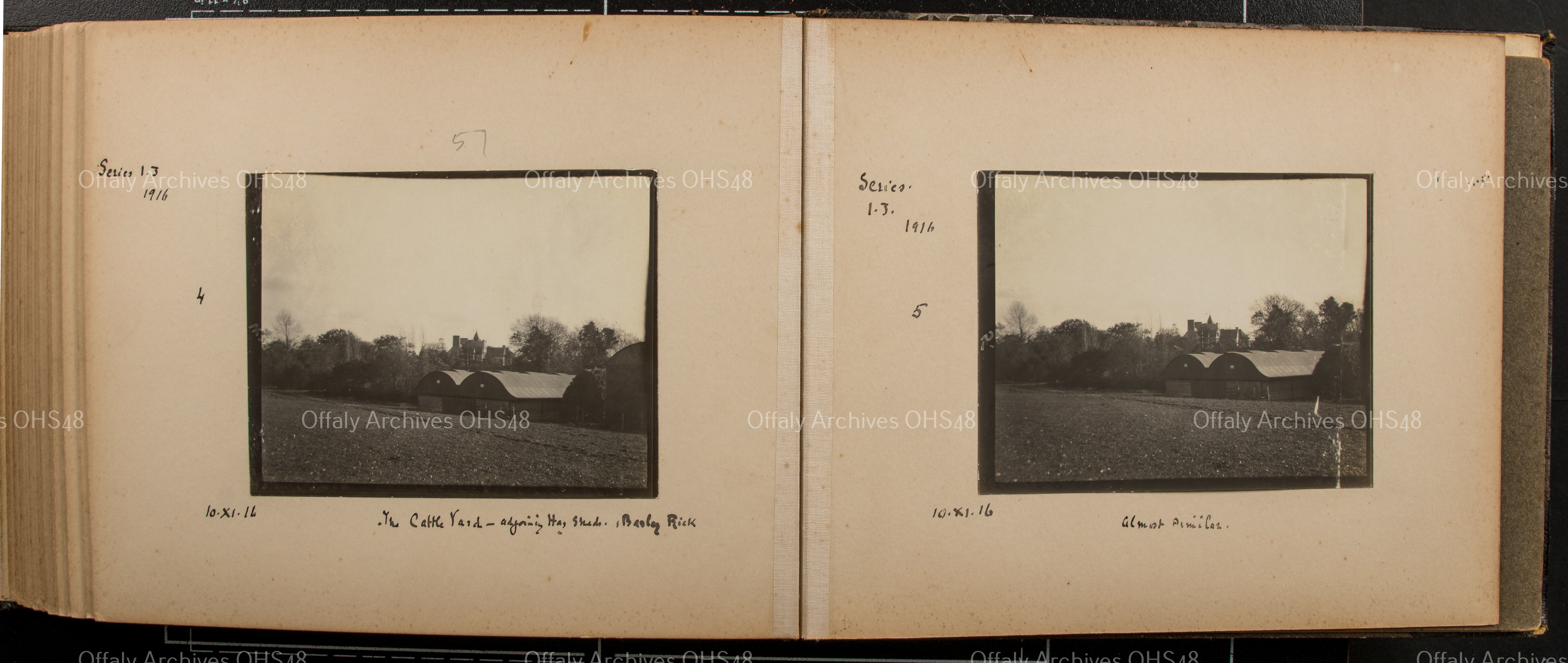 - 'The Cattle Yard - adjoining Hay Sheds. Barley Rick'.