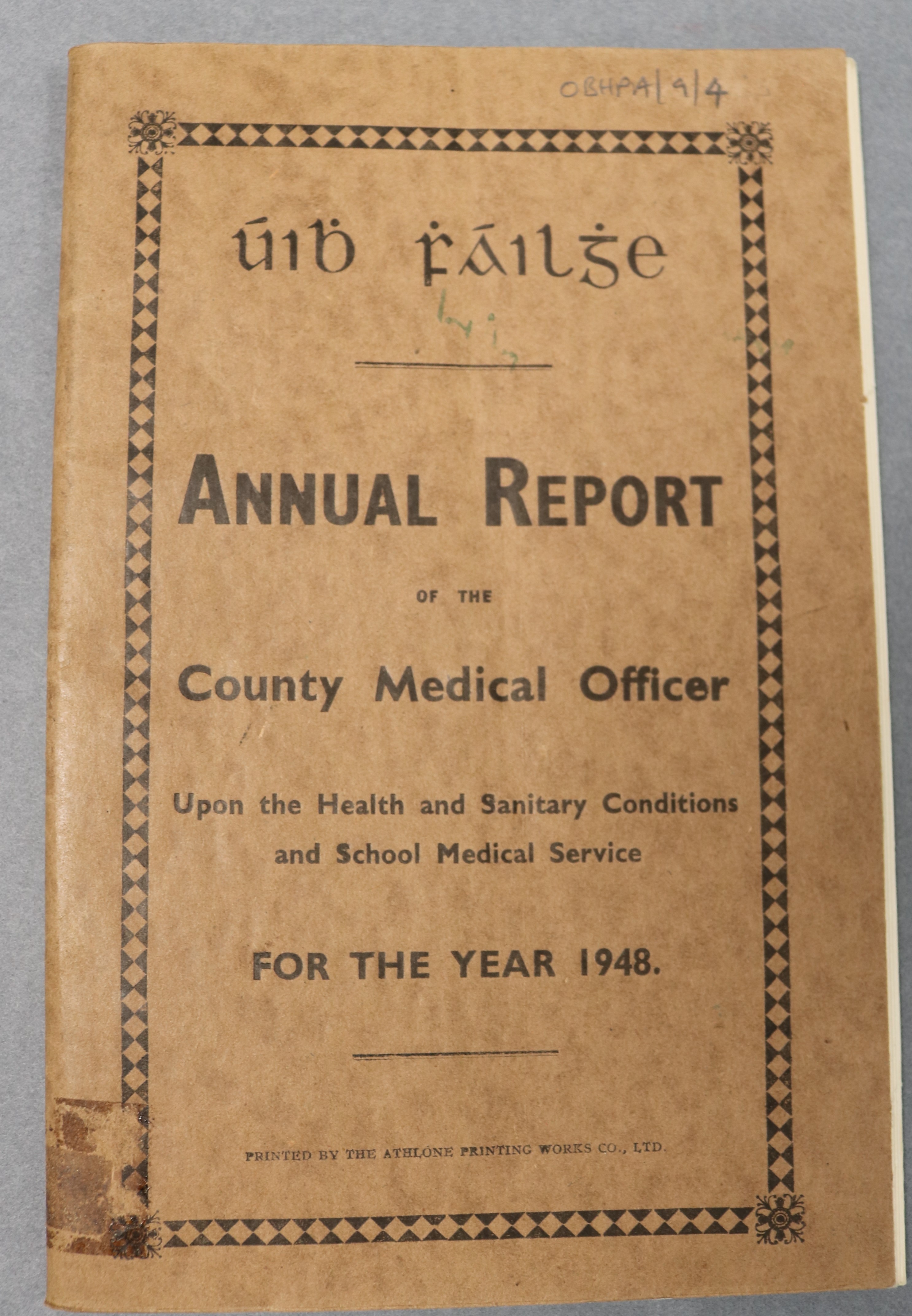 Series of annual reports with many gaps, compiled by the County Medical Officer of Health. The first extant report from 1929 focuses mainly on statistics gathered from inspections of the the national schools in the county. Topics covered include dental health, ophthalmic clinics, tonsil and adenoid operations, enlarged cervical glands, 'mental defectives', tuberculosis, malnutrition, vaccination, skin diseases, defective speech, rheumatism, deformities, open-air education, co-operation of parents, sanitation and environment of schools,